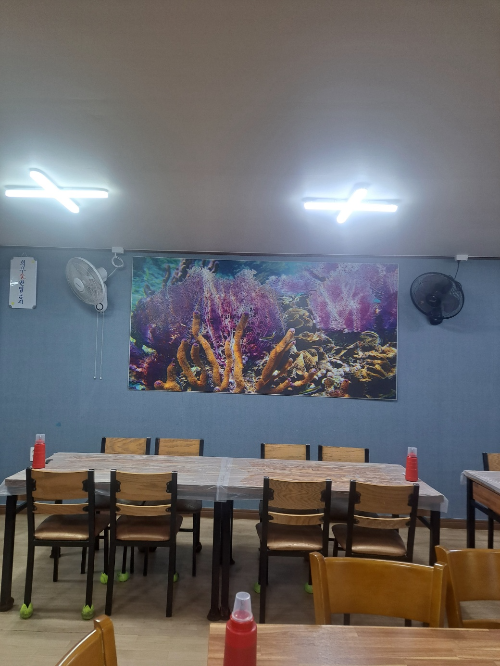 통영의 아름다운 바다를 배경으로 한 바다다찌 집은 내부부터 남다른 느낌이 들었습니다. 식당 안 벽면에는 바다를 옮겨 놓은 듯 커다란 액자들이 눈길을 끓었습니다. 물론 식당 안은 아주 깨끗했습니다.