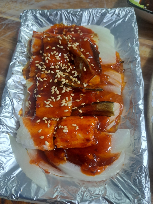 우와 이번에는 자글자글 끓고 있는 건강에 좋은 장어 양념구이, 전갱이 구이, 특유의 풍미를 자랑하는 장어내장이 나왔습니다,