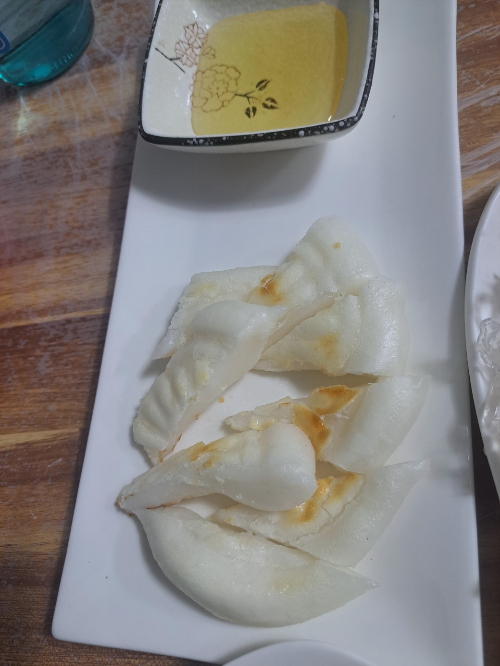조금 있으니 정말 감동 감동 ~~ 하얀 절편 구이가 니왔어요. 달콤한 꿀에 찍어 먹으니 맛이 정말 일품입니다.