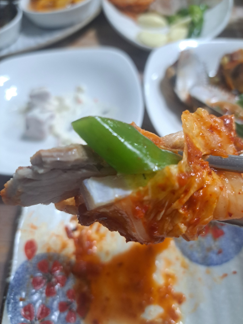 삼겹살, 홍어, 김치 삼합의 그 향긋함은 입 안을 가득 메웠어요.