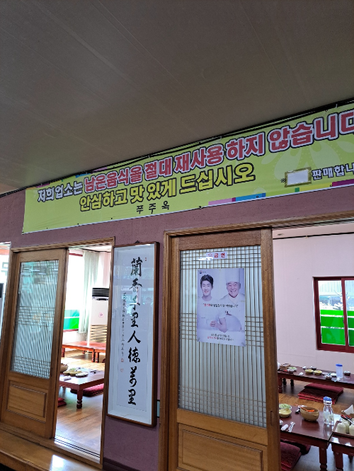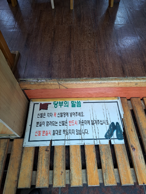 일요일 오후 찾은 통영 푸주옥 식당 안은 아주 넓었습니다. 자리도 많아서 단체 손님을 맞이하기에도 아주 적합한 것 같았습니다. 저희가 찾은 날도 45인승 대형 버스 3대의 예약 손님이 방문했어요. 그래도 좌석이 남았어요. 식당 입구에는 중요한 신발은 개인 사물함이 있어 따로 보관할 수도 있었어요.