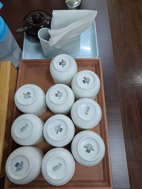 테이블에는 물컵 등이 가지런히 잘 정리되어 놓여 있었어요. 저희는 무릎 도가니탕을 주문했습니다.