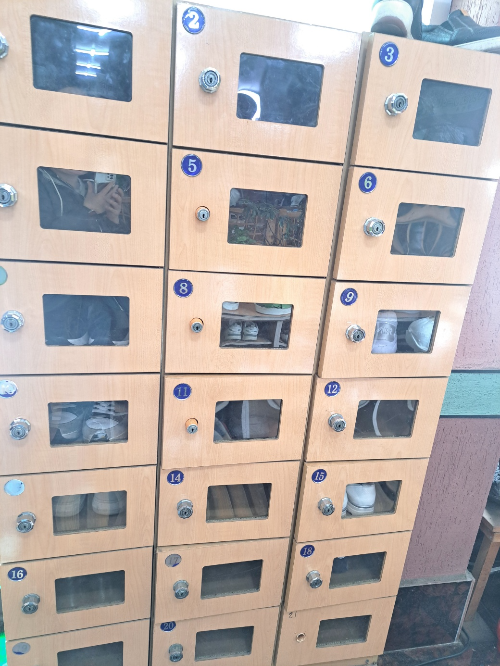 일요일 오후 찾은 통영 푸주옥 식당 안은 아주 넓었습니다. 자리도 많아서 단체 손님을 맞이하기에도 아주 적합한 것 같았습니다. 저희가 찾은 날도 45인승 대형 버스 3대의 예약 손님이 방문했어요. 그래도 좌석이 남았어요. 식당 입구에는 중요한 신발은 개인 사물함이 있어 따로 보관할 수도 있었어요.