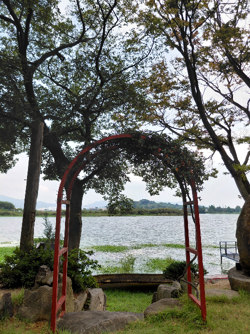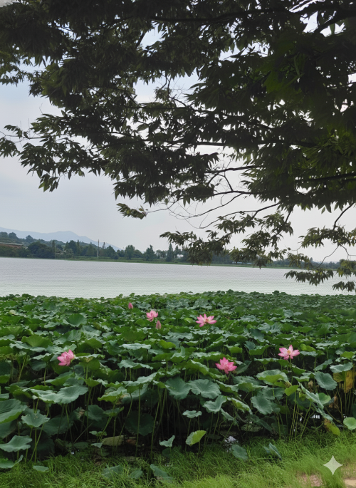 흐른 카페가 더욱 특별했던 이유는 바로 카페 옆 연꽃 군락지 덕분이었어요. 드넓게 펼쳐진 연꽃들이 강물 위에서 한들거리는 모습은 마치 한 폭의 수채화 같았답니다. 가을의 문턱에서 만난 연꽃들은 고요하면서도 신비로운 분위기를 자아내, 카페의 운치를 한층 더 깊게 만들어주었어요.