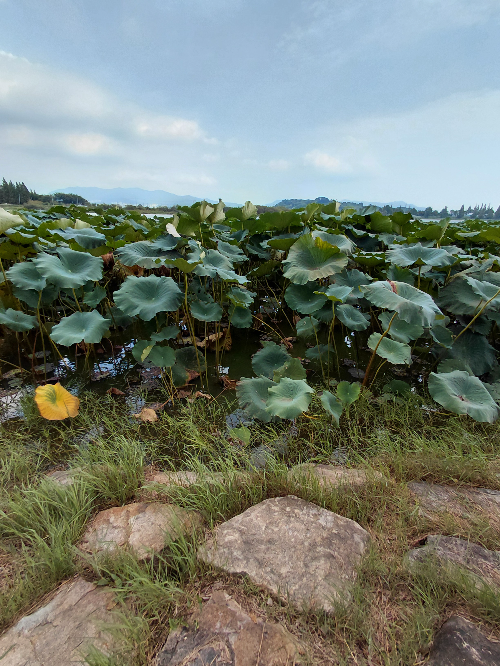 바로 옆에서 길게 쭉 뻗은 연꽃 줄기와 비가 오면 비를 막아줄 듯 우산처럼 넓은 싱싱한 연잎이 바람에 이리저리 몸을 흔들며 인사라도 하듯 반갑게 맞아주었습니다. 꽃이 피면 얼마나 더 아름다울까요.