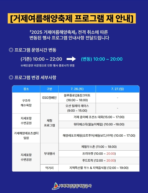 2025 거제 여름 해양 축제 무더위를 날릴 시원한 바다 축제! 개막식 행사 취소 체험 행사 등은 진행