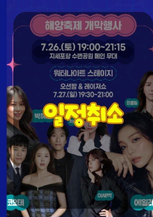 축제의 시작을 알리는 개막식은 물론, 이틀 밤 모두를 뜨겁게 달굴 인기가수들의 무대와 함께 '오션밤 & 레이저쇼'가 펼쳐질 예정이었습니다. 아름다운 지세포항의 밤하늘을 수놓을 레이저와 시원한 물줄기가 어우러진 환상적인 워터나이트 스테이지는 축제의 절정이 될 것이었습니다. 아마 행시가 진행되었다면 밤에는 더 뜨거운 열기를 느낄 수 있었을 겁니다.