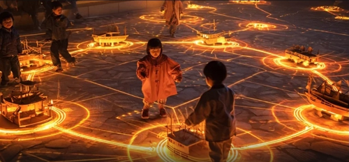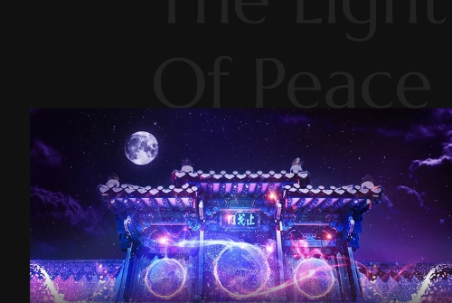 내삼문 앞, 신성한 문 위로 태극 문양이 빛나고, 무기를 내려놓고 평화의 길로 나아가는 수군들의 이야기가 프로젝션 맵핑으로 연출됩니다. 창을 거두는 수군들의 귀환 행렬은 우리에게 깊은 울림을 줍니다.