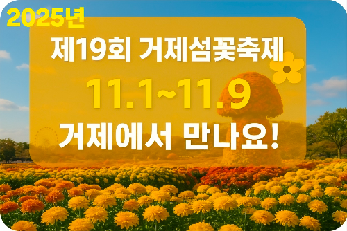 2025년 11월 1일부터 9일까지 거제시농업개발원과 거제식물원에서 열리는 제19회 거제섬꽃축제! 100여 개 국화조형물 전시와 체험, 공연이 함께하는 가을 대표축제. 가족, 연인, 친구와 함께 거제 가을여행을 즐겨보세요.